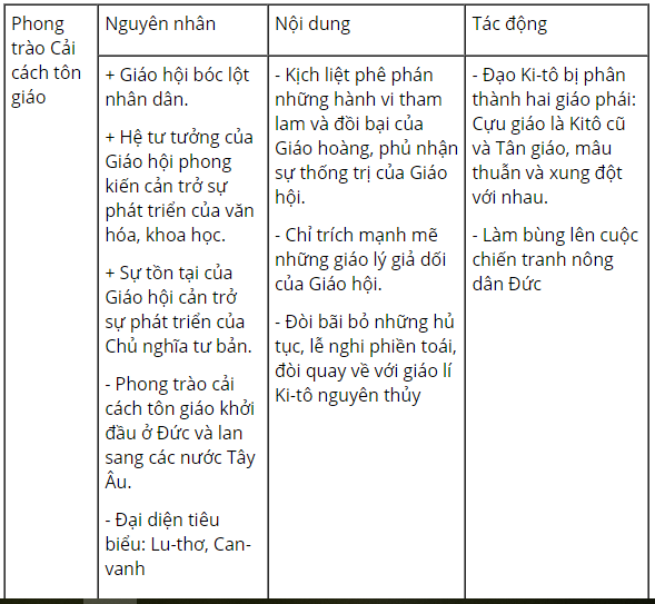 – Giai cấp tư sản đang lên coi Giáo hội là một thế lực cản trở bước tiến của họ nên họ đòi thay đổi và “cải cách” tổ chức Giáo hội đó, phong trào Cải cách tôn giáo xuất hiện.