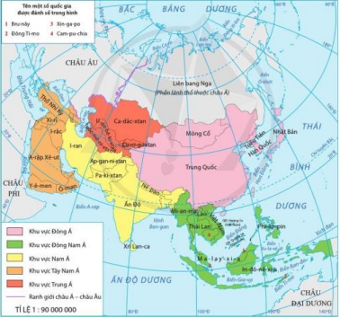 Lý thuyết Địa lí 7 Bài 7 (Cánh diều 2023): Bản đồ chính trị Châu Á. Các khu vực Châu Á