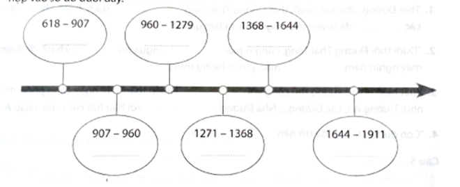 Câu 2 trang 15 vở thực hành Lịch sử 7: Hãy điền tên các triều đại phong kiến Trung Quốc từ thế kỉ VII đến giữa thế kỉ XIX phù hợp vào sơ đồ dưới đây.